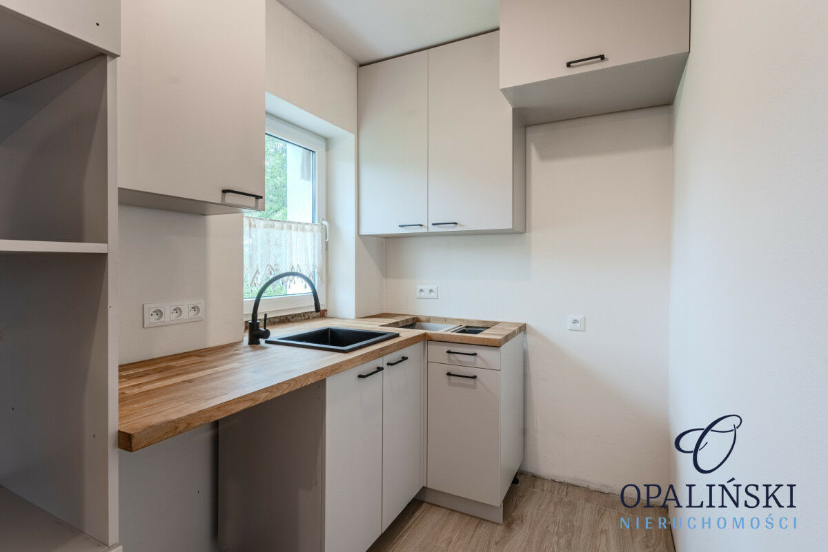 Mieszkanie o pow. 28,36m2 po generalnym remoncie, wymienione zostały instalacje wodne oraz elektryczne, na podłodze panele drewniane, kuchnia pod wymiar, ogrzewanie kominkowe, okna PCV. Budynek ocieplony, dach kryty papą.